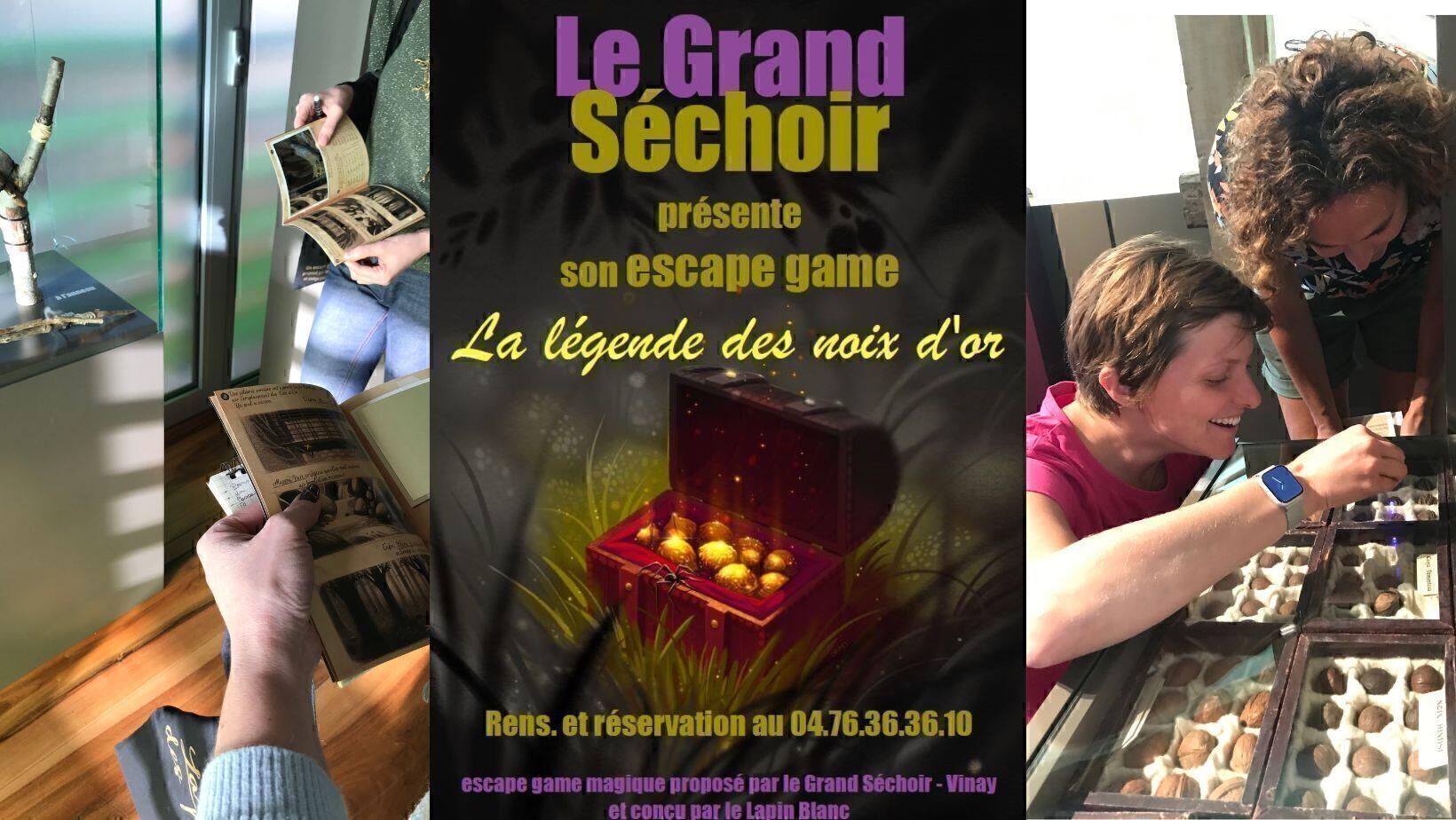 Conçu par Le Lapin Blanc, ce jeu, vous plonge dans l'univers de la sorcellerie pour une (re)découverte ludique du Grand Séchoir. D'énigme en énigme, grâce au carnet de Cornelia Platycaria, reconstituez le parcours qui mène aux mystérieuses noix d'or !